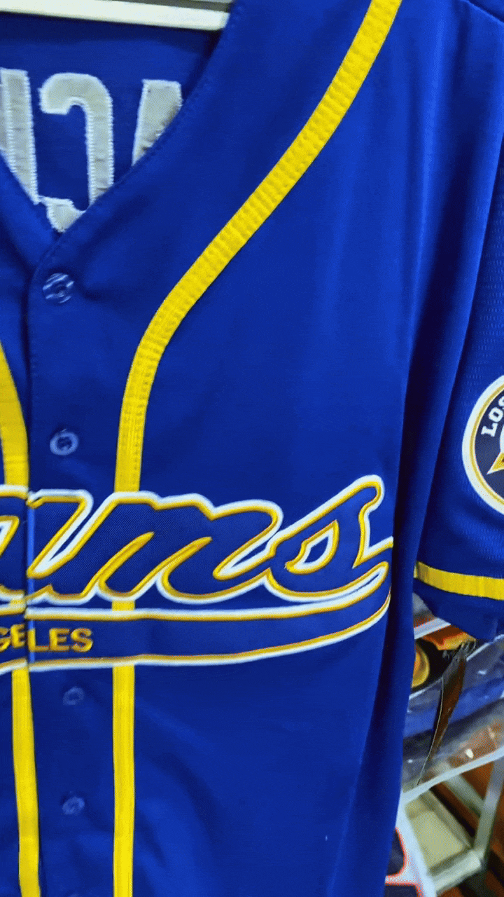 - Premium baseball jersey inspired by Los Angeles team colors